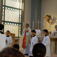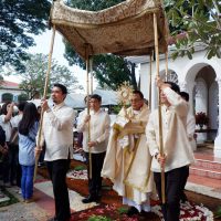 With solemn excitement, we held our annual Eucharistic Procession on November 25, 2017. The event began with the celebration of Holy Mass officiated by Rev. Msgr. Carlos Estrada, Vicar General of Opus Dei. The procession soon followed after the mass. The priest, assisted by volunteer fathers, carried the Blessed Sacrament in a monstrance around the campus, walking on floral carpets lovingly prepared by the students, parents, alumnae, and staff the previous day.